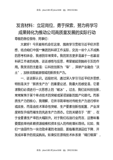 经济思想发言:立足岗位,勇于探索,努力将学习成果转化为推动公司高质量发展的实际行动.docx