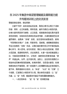 在公司中高层管理赋能及履职能力提升专题培训班上的交流发言.docx