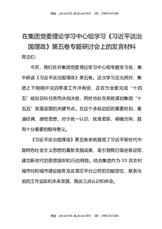 在集团党委理论学习中心组学习《习近平谈治国理政》第五卷专题研讨会上的发言材料.docx