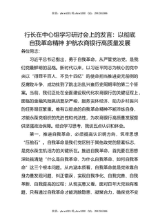 行长在中心组学习研讨会上的发言:以彻底自我革命精神,护航农商银行高质量发展.docx