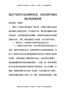 国企干部学习全会精神发言:在新征程中推动国企高质量发展.docx