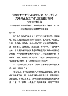 市国资委党委书记专题学习总书记对中央企业工作作出重要指示精神交流研讨发言.docx