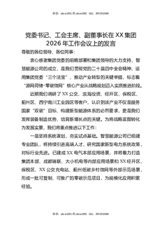 党委书记,工会主席,副董事长在XX集团2026年工作会议上的发言.docx