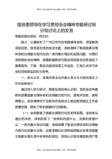 国资委领导在学习贯彻全会精神专题研讨班分组讨论上的发言.docx
