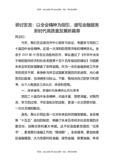 研讨发言:以全会精神为指引,谱写金融服务新时代高质量发展新篇章.docx