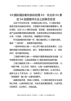XX国际酒店餐饮部总经理XX:在北岳XX景区5A创建誓师大会上的表态发言.docx