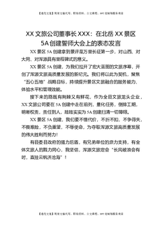 XX文旅公司董事长XXX:在北岳XX景区5A创建誓师大会上的表态发言.docx