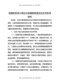加强和改进小微企业金融服务座谈会交流发言材料.docx