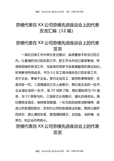 劳模代表在XX公司劳模先进座谈会上的代表发言汇编(12篇).docx