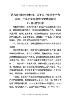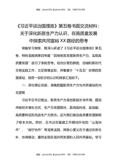 第五卷书面交流材料:关于深化新质生产力认识,在高质量发展中探索共同富裕XX路径的思考.docx