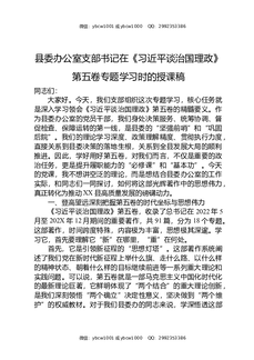县委办公室支部书记在《习近平谈治国理政》第五卷专题学习时的授课稿.docx