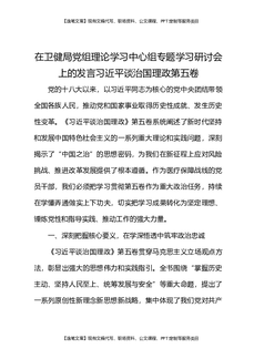 在卫健局党组理论学习中心组专题学习研讨会上的发言:《习近平谈治国理政》第五卷.docx