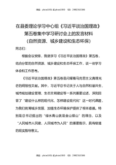 在县委理论学习中心组《习近平谈治国理政》第五卷集中学习研讨会上的发言材料(自然资源城乡建设和生态环保).docx