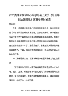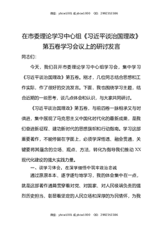 在市委理论学习中心组《习近平谈治国理政》第五卷学习会议上的研讨发言.docx