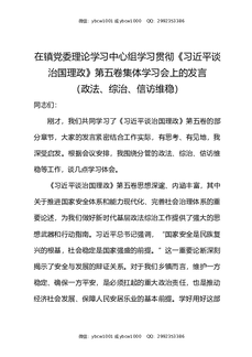 在镇党委理论学习中心组学习贯彻《习近平谈治国理政》第五卷集体学习会上的发言(政法综治信访维稳).docx