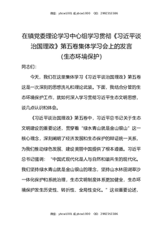 在镇党委理论学习中心组学习贯彻《习近平谈治国理政》第五卷集体学习会上的发言(生态环境保护).docx