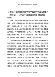 在市统计局党组理论学习中心组学习研讨会上的讲话(《总书记谈治国理政》第五卷).docx