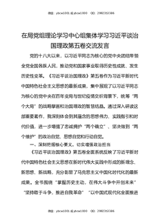 在局党组理论学习中心组集体学习习近平谈治国理政第五卷交流发言.docx