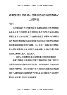 市委党建引领基层治理领导协调机制全体会议上的讲话.docx