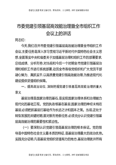 市委党建引领基层高效能治理暨全市组织工作会议上的讲话.docx
