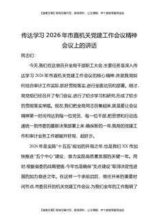传达学习2026年市直机关党建工作会议精神会议上的讲话.docx