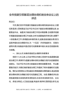 全市党建引领基层治理协调机制全体会议上的讲话.docx