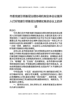 市委党建引领基层治理协调机制全体会议暨深入打好党建引领基层治理硬仗推进会议上的讲话.docx