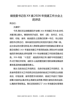 镇党委书记在XX镇2026年党建工作大会上的讲话.docx