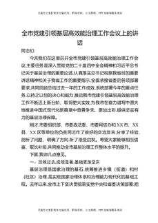 全市党建引领基层高效能治理工作会议上的讲话.docx