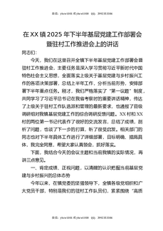 在XX镇2025年下半年基层党建工作部署会暨驻村工作推进会上的讲话.docx