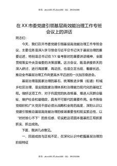在XX市委党建引领基层高效能治理工作专班会议上的讲话.docx