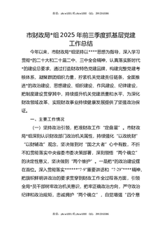 市财政局党组2025年前三季度抓基层党建工作总结.docx