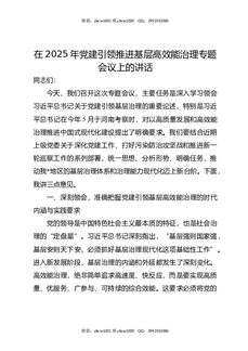 在2025年党建引领推进基层高效能治理专题会议上的讲话.docx