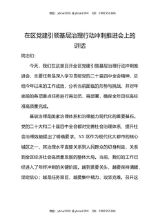 在区党建引领基层治理行动冲刺推进会上的讲话.docx
