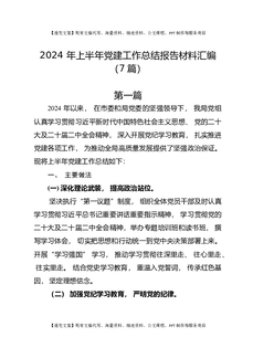(7篇)2024 年上半年党建工作总结报告材料汇编.docx