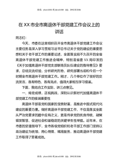 在XX市全市离退休干部党建工作会议上的讲话.docx