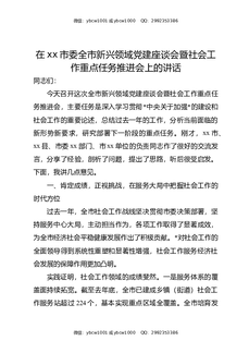 在XX市委全市新兴领域党建座谈会暨社会工作重点任务推进会上的讲话.docx