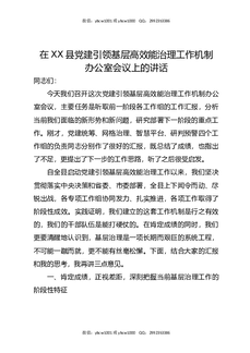 在XX县党建引领基层高效能治理工作机制办公室会议上的讲话.docx