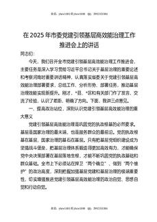 市委书记在2025年全市党建引领基层高效能治理工作推进会上的讲话.docx