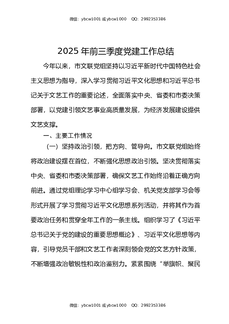 市委办公室机关委员会关于2025年前三季度党建工作情况的总结报告.docx