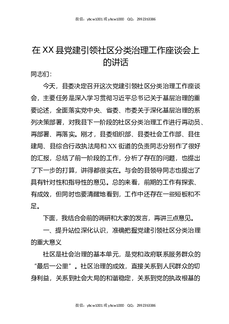在XX县党建引领社区分类治理工作座谈会上的讲话.docx