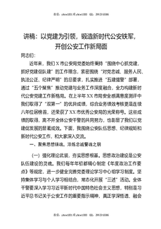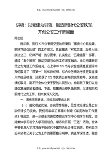 讲稿:以党建为引领,锻造新时代公安铁军,开创公安工作新局面.docx
