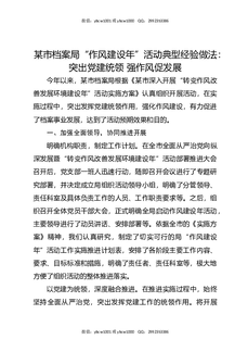 某市档案局“作风建设年”活动典型经验做法:突出党建统领强作风促发展.docx
