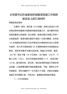 乡党委书记在省委组织部基层党建工作调研座谈会上的汇报材料.docx