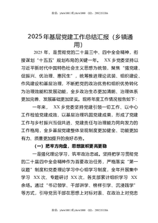 2025年基层党建工作总结汇报(乡镇通用).docx