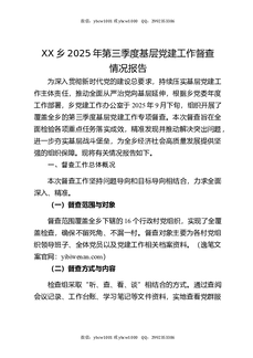 XX乡2025年第三季度基层党建工作督查情况报告.docx