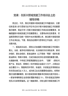 党课:在新兴领域党建工作培训会上的辅导.docx
