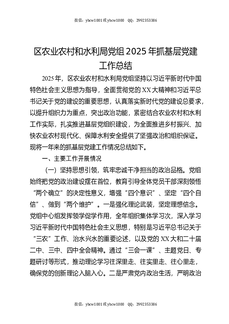 区农业农村和水利局党组2025年抓基层党建工作总结.docx