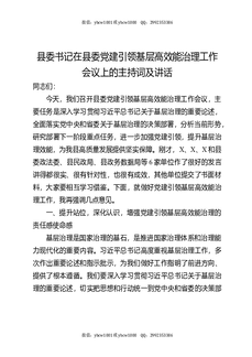 县委书记在县委党建引领基层高效能治理工作会议上的主持词及讲话.docx