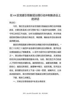 在XX区党建引领基层治理行动冲刺推进会上的讲话.docx